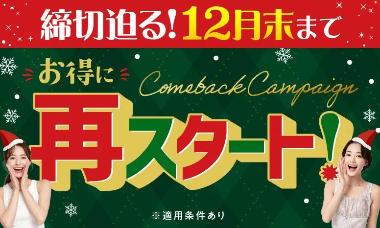 ▼最大70,400円OFFの再入会キャンペーン開催中▼